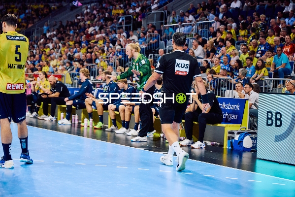 Ein Spieler von THW Kiel verlässt das Spielfeld, während das Publikum zusieht.