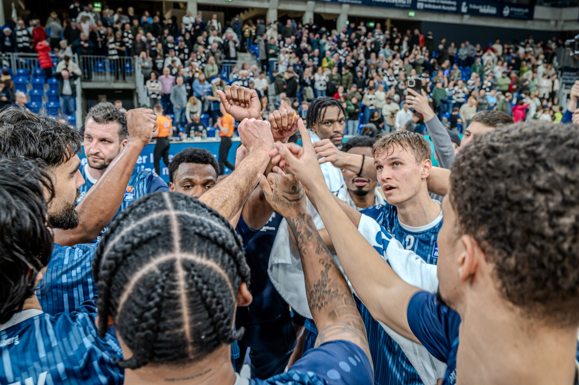 Jubel mit Osun Osunniyi (12; MLP Academics Heidelberg) im Vordergrund